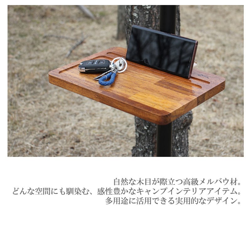 アウトドアシーンをより快適に、そしてスタイリッシュに演出する TOHYO ポール用ウッドトレー が、新たにメルバウ材仕様で登場!キャンプやバーベキュー時の小物置きとして、スマートフォンやカップをすぐ手元にキープできます。