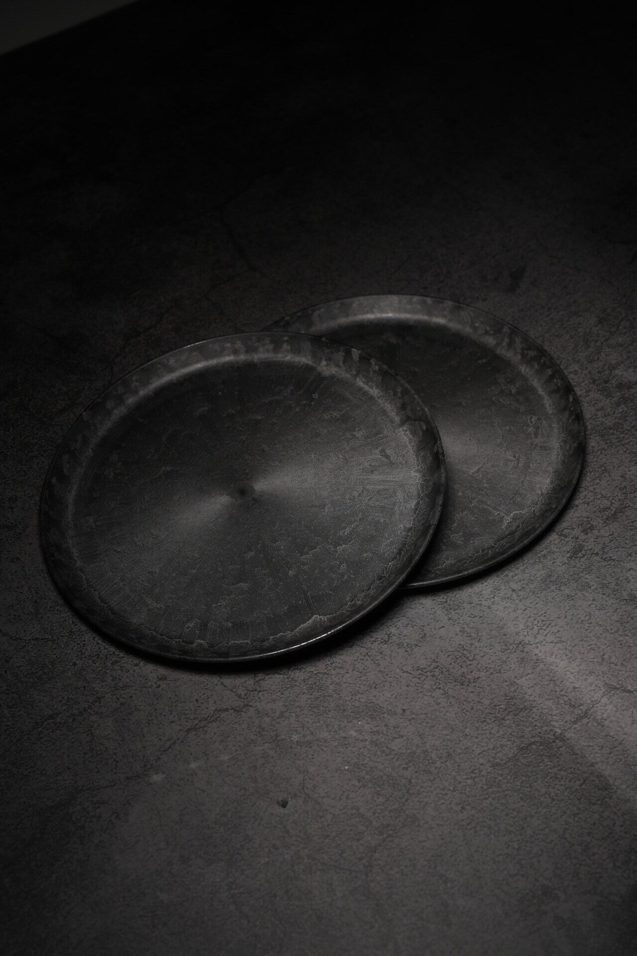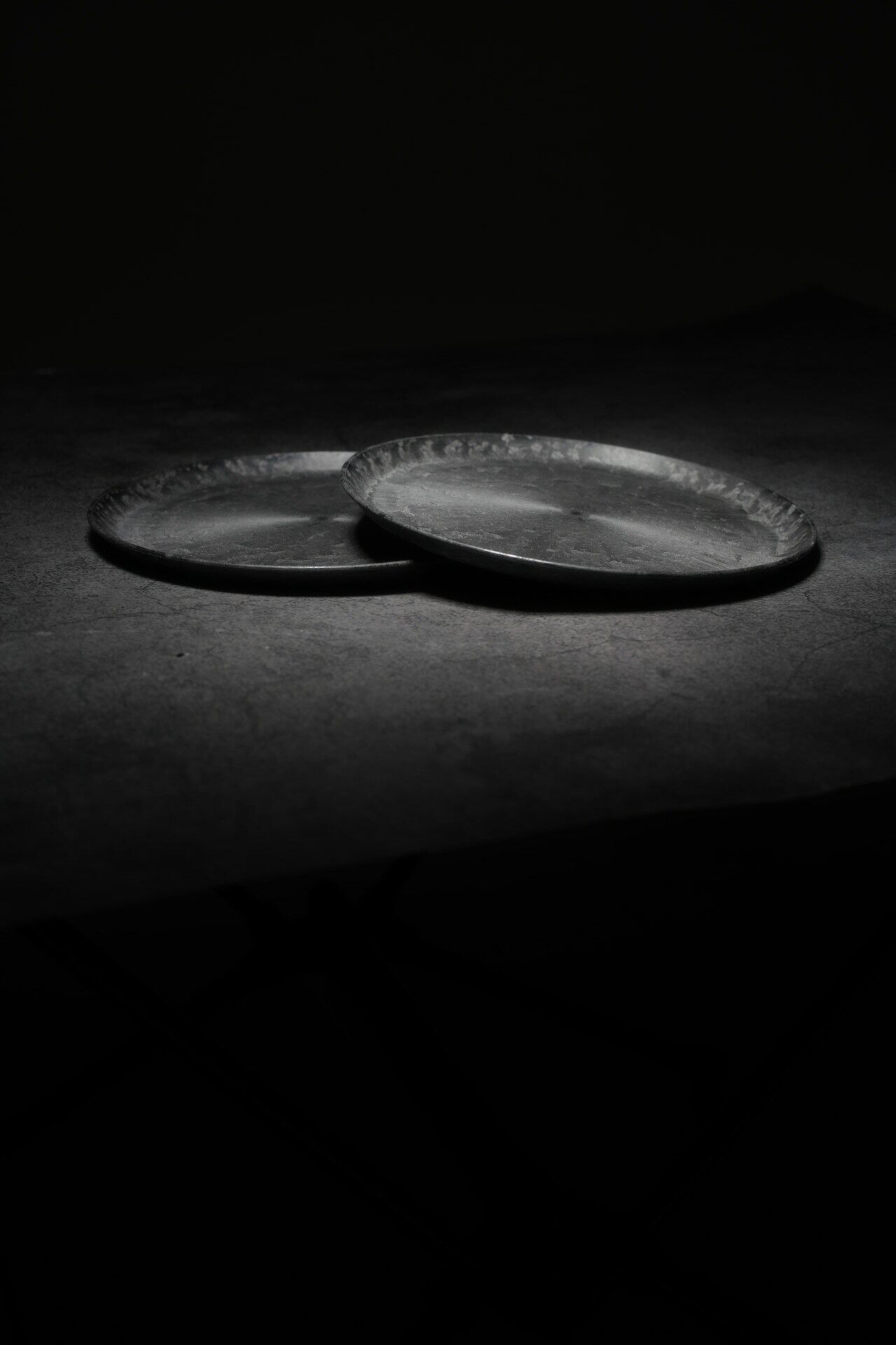 漆黒の中に流動性のある銀灰色の模様が浮かび上がり、