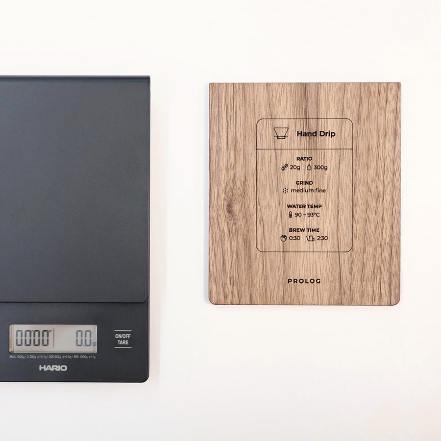PROLOG ウッドリマインダー コーヒーブリューイングシリーズは、プロのバリスタ監修によるベーシックで汎用性の高いブリューイングガイドを、美しい木製プレートに落とし込んだ新しいツールです。