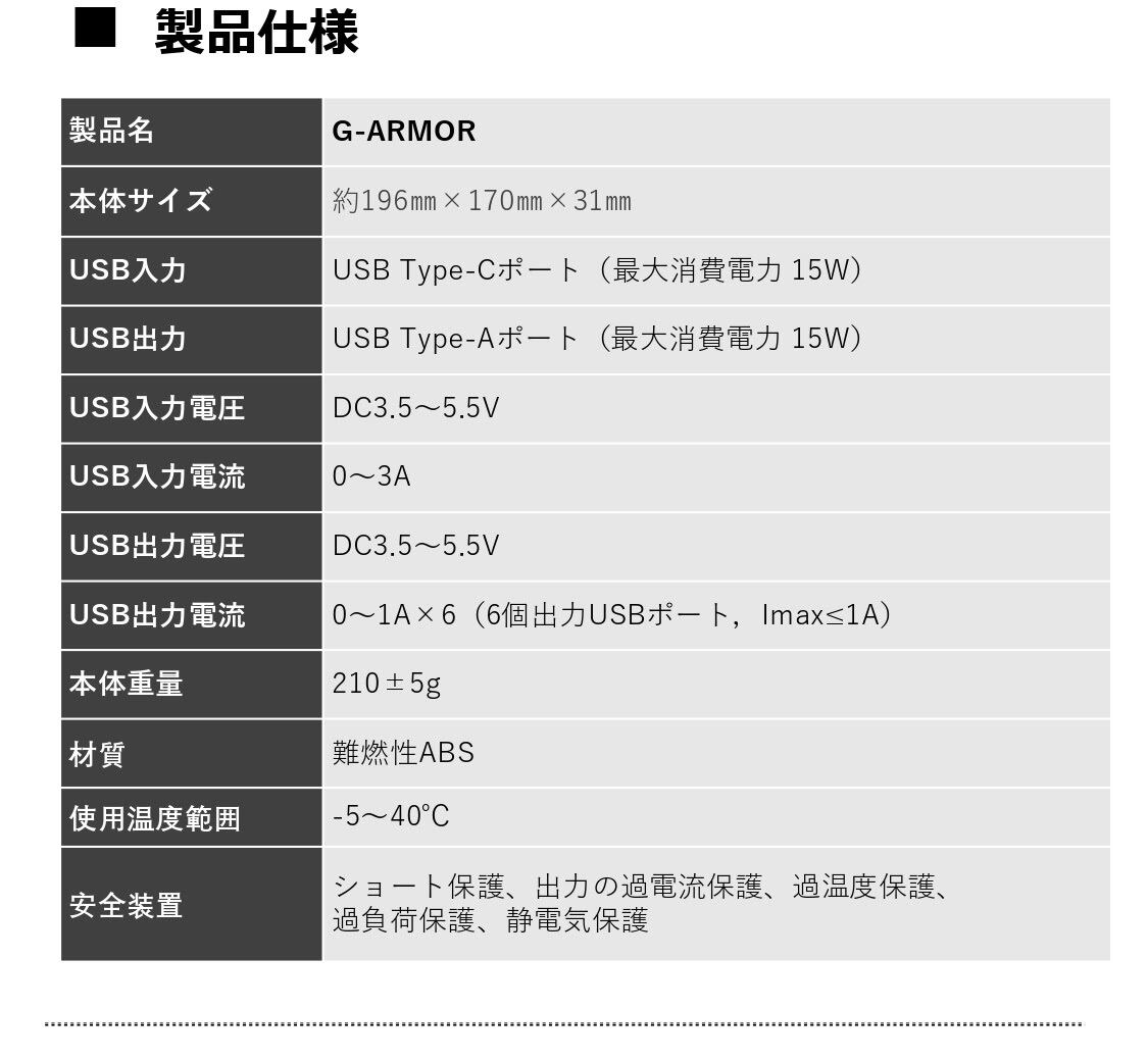 ・出力:USB Type-A(最大15W)