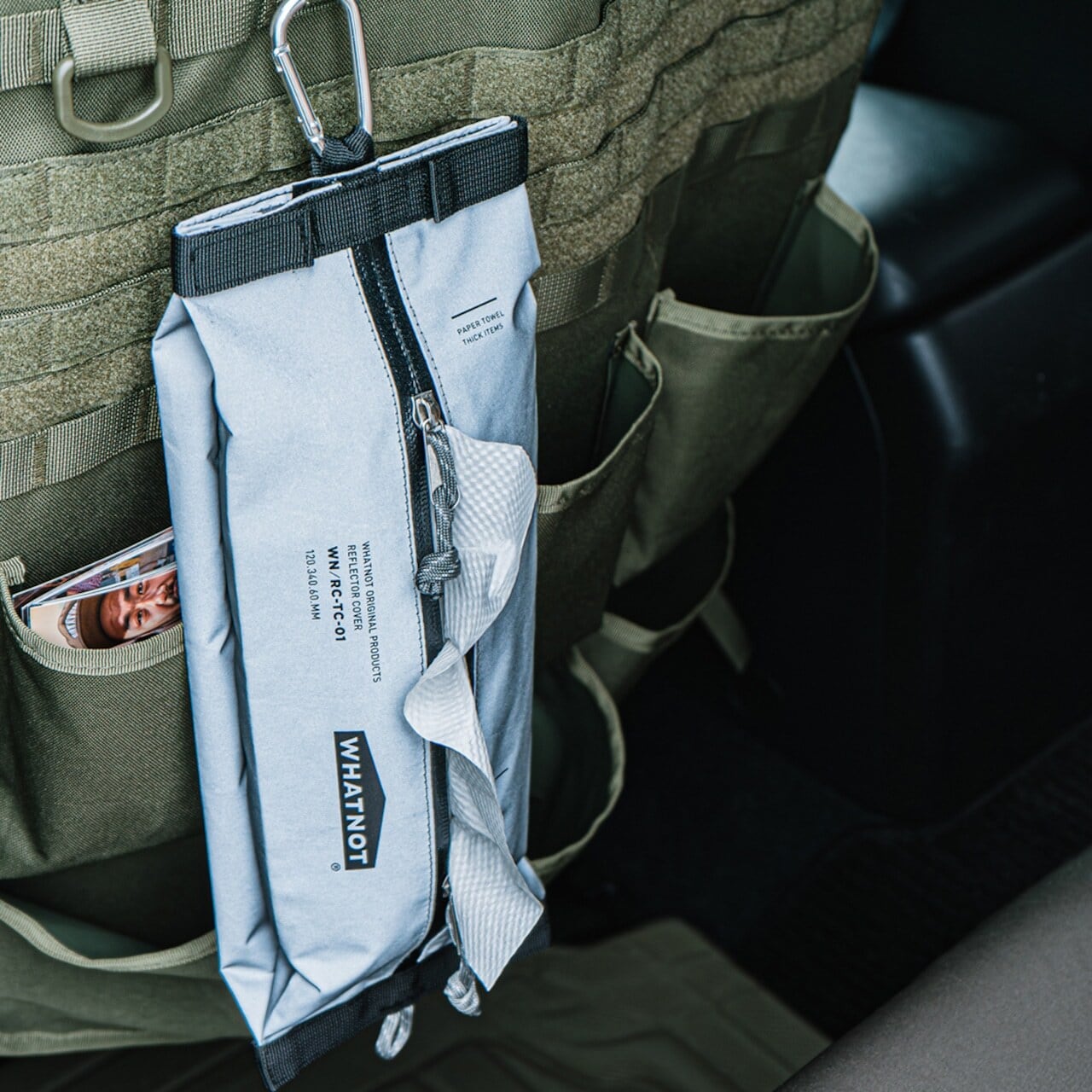 光を反射するリフレクター生地で作られたWHATNOTオリジナルのティッシュカバー。