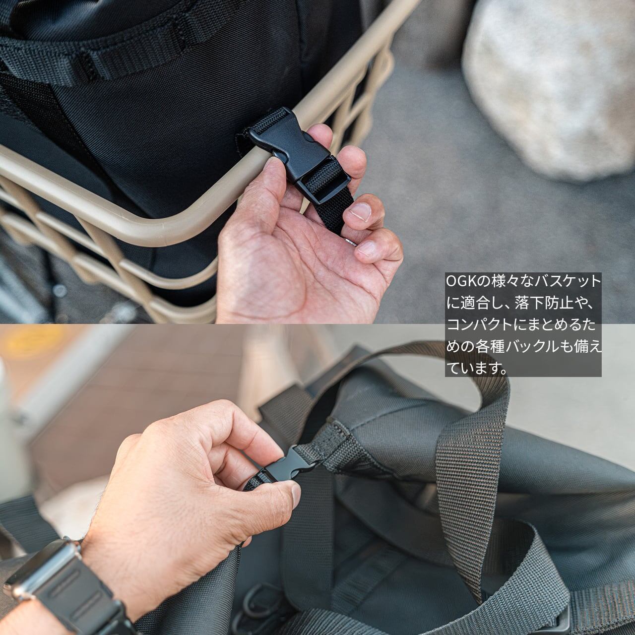 また、様々なOGKの自転車バスケットに収まり、降ろした後はそのまま肩掛けできるデザインも魅力。アウトドアからタウンユース、日常の買い物バッグとしても最適です。