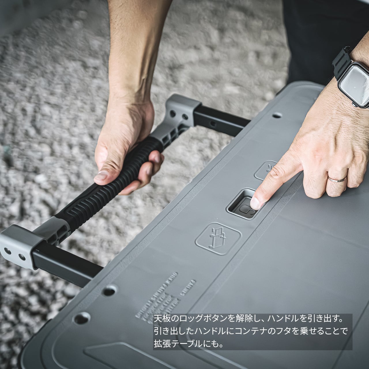 フタは完全に取り外し可能で、引き伸ばしたハンドル部分に載せれば補助テーブルとしても活用できます。
