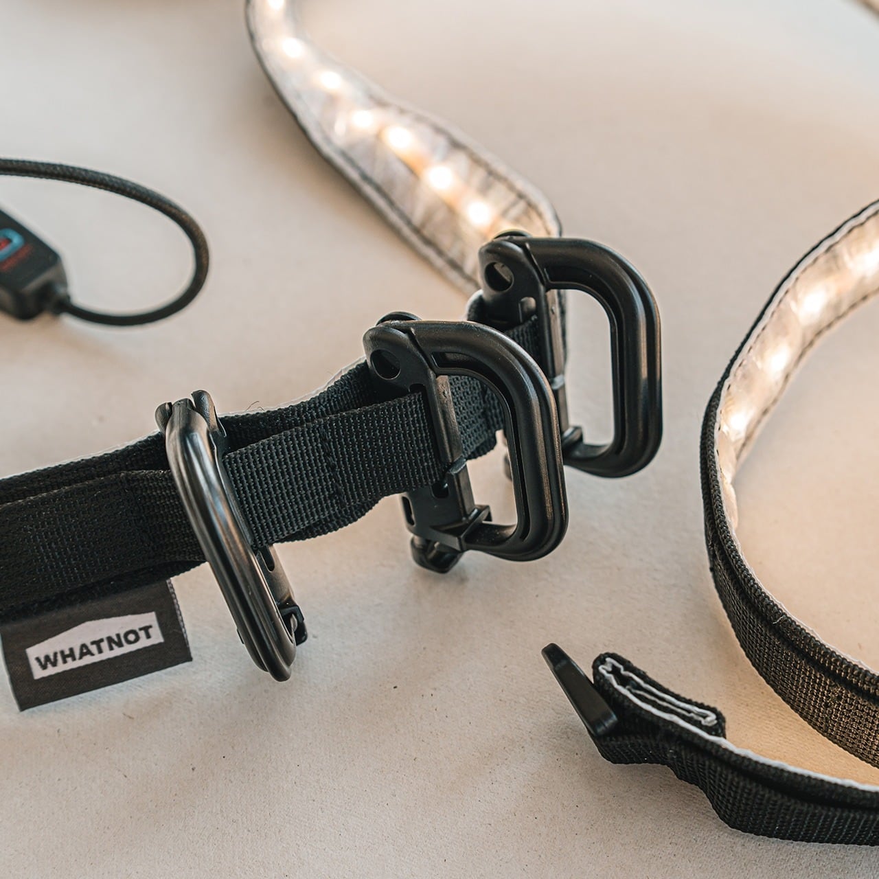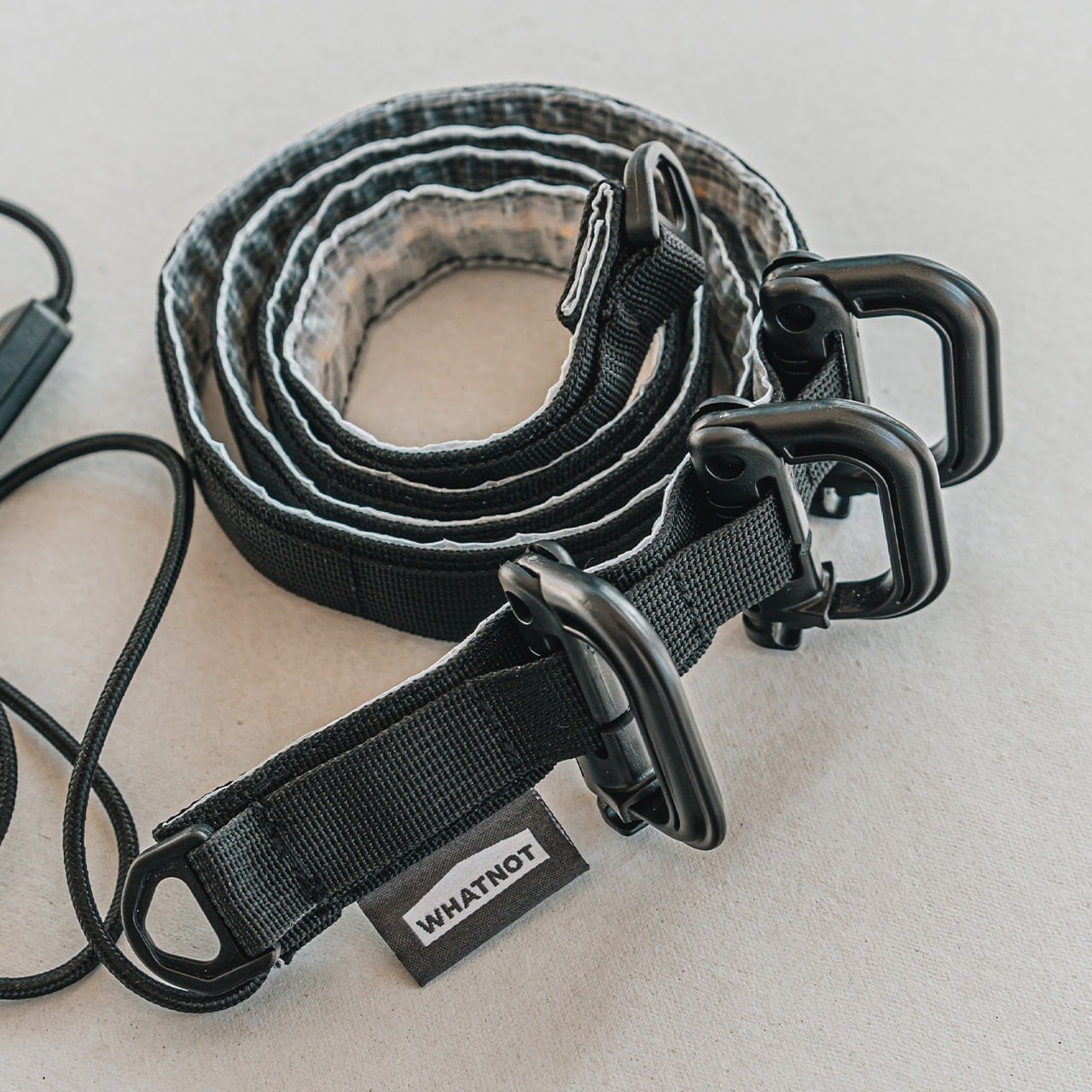 ウェビングテープベースのデザインで、付属のグリムロックカラビナを使ってテント内や車中、ガレージなどお好みの場所に吊り下げ可能です。