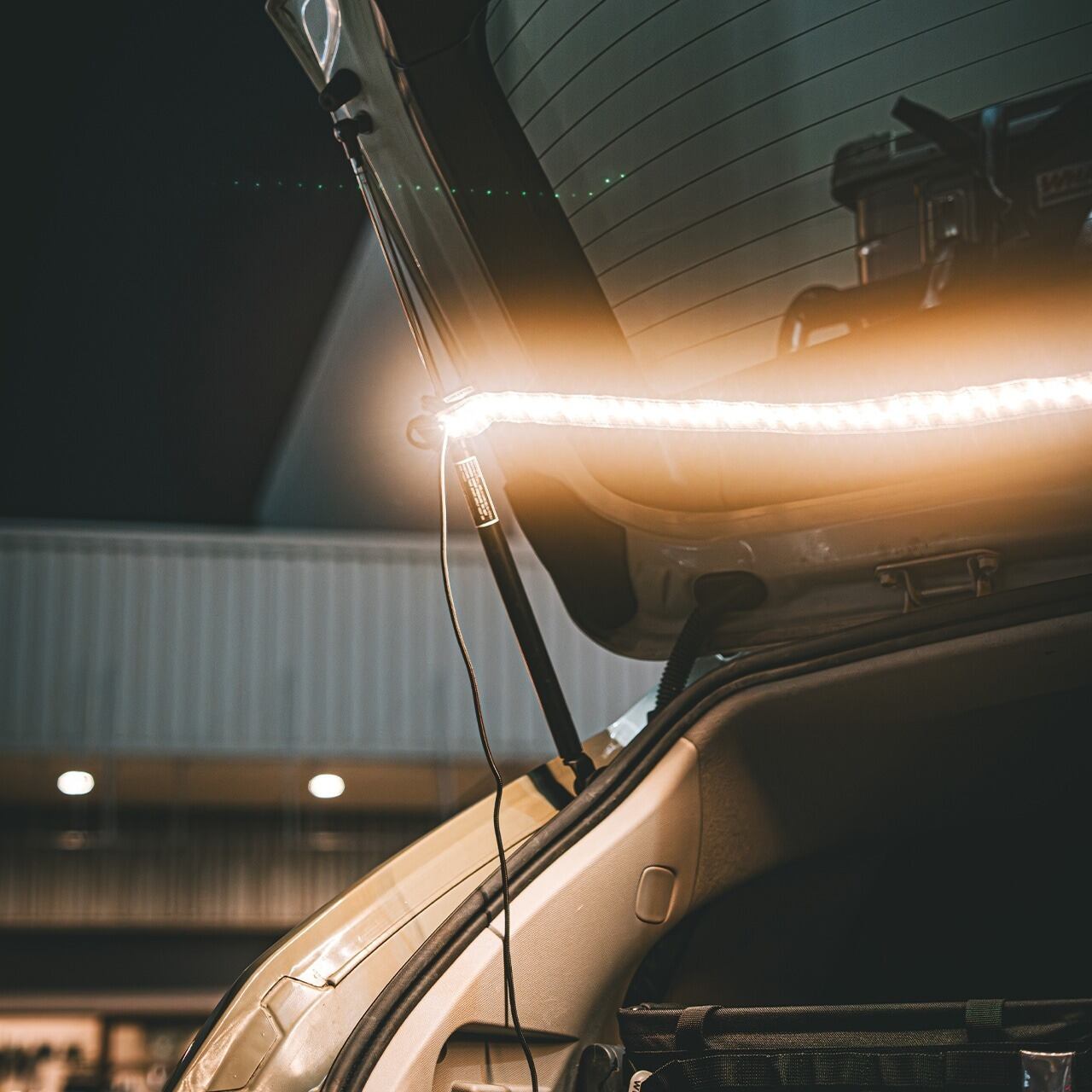 電球色のLEDが、アウトドアの夜をやさしく照らします。