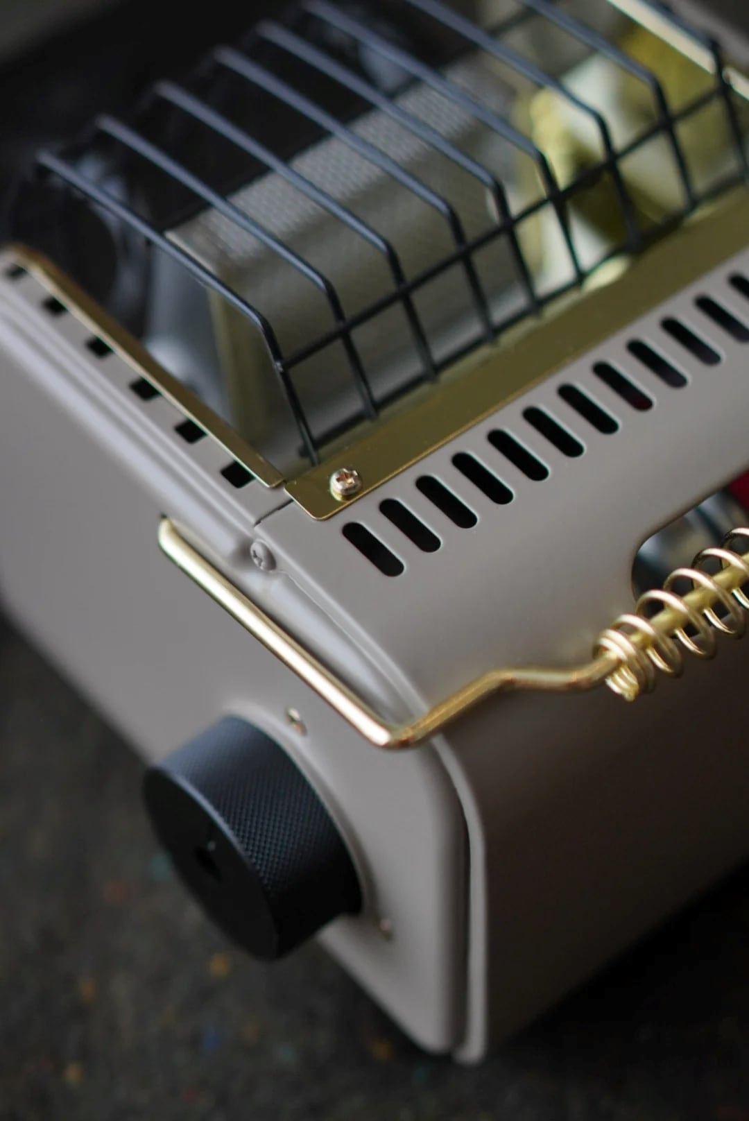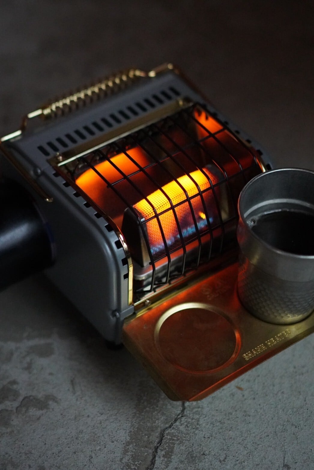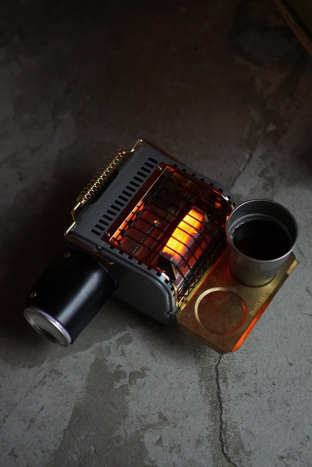 真鍮色に塗装されたガードや、重厚感のあるアルミ削り出しのノブなど、道具としての美しさを追求。置いておくだけでも絵になるデザインです。