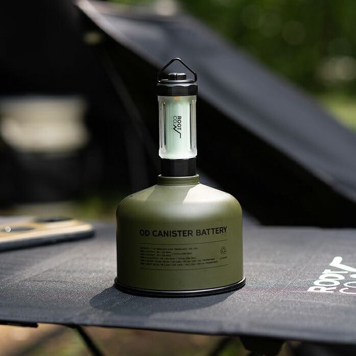 ランタンのUSB-A端子を「OD CANISTER BATTERY」の上部ポートに接続するだけでランタン拡張バッテリーとして給電が可能。「OD CANISTER BATTERY」はそのままスタンドとしても機能します。