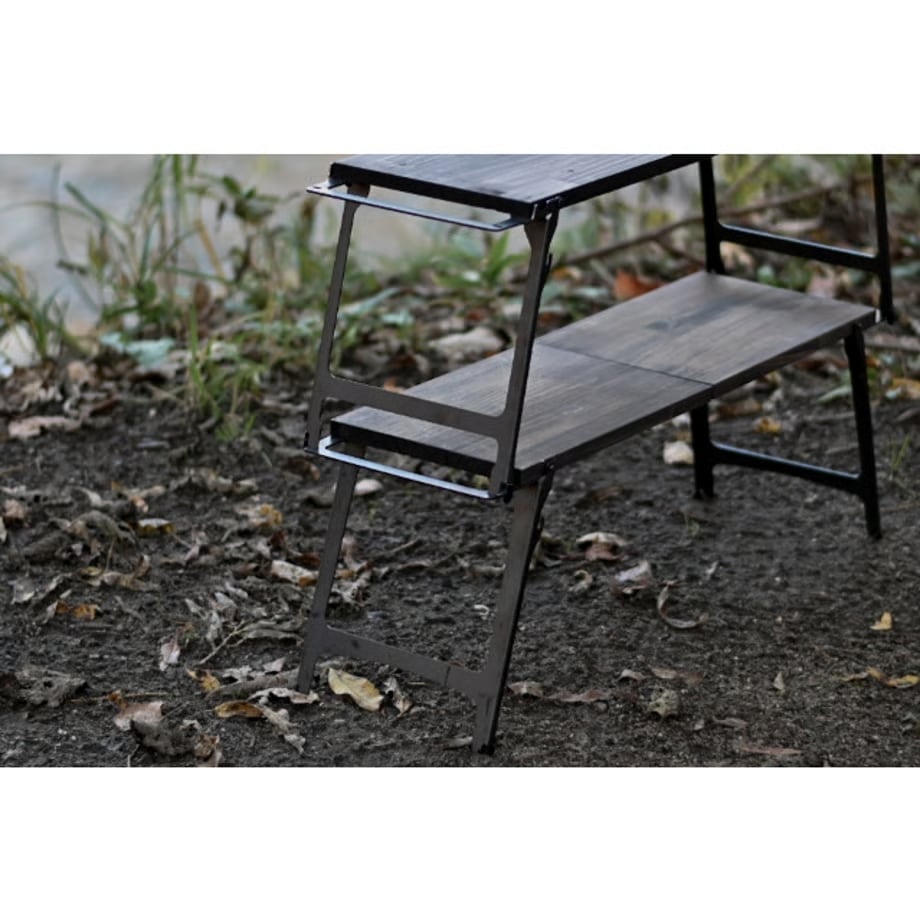 別売りの「kakudo GOTOKU」と組み合わせて下段ラックを増設可能。クッカーの置き場やサブテーブルとして活用できます。