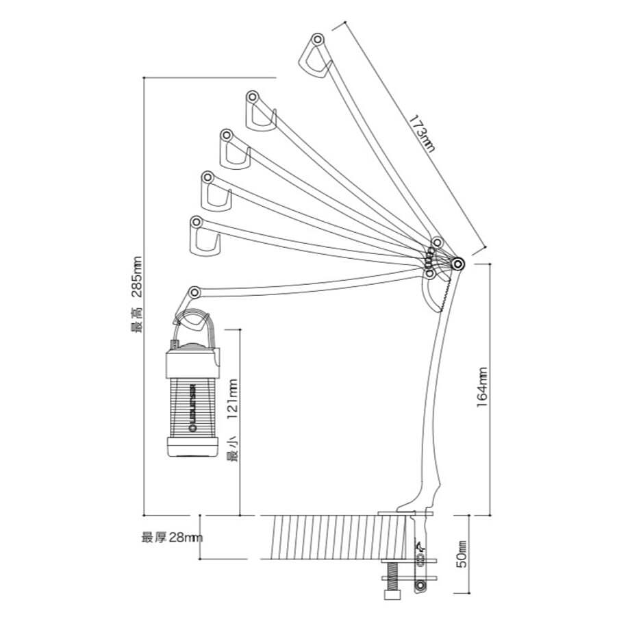 *取付:** クランプ式で、厚さ最大28mmまでのテーブルに固定できます。