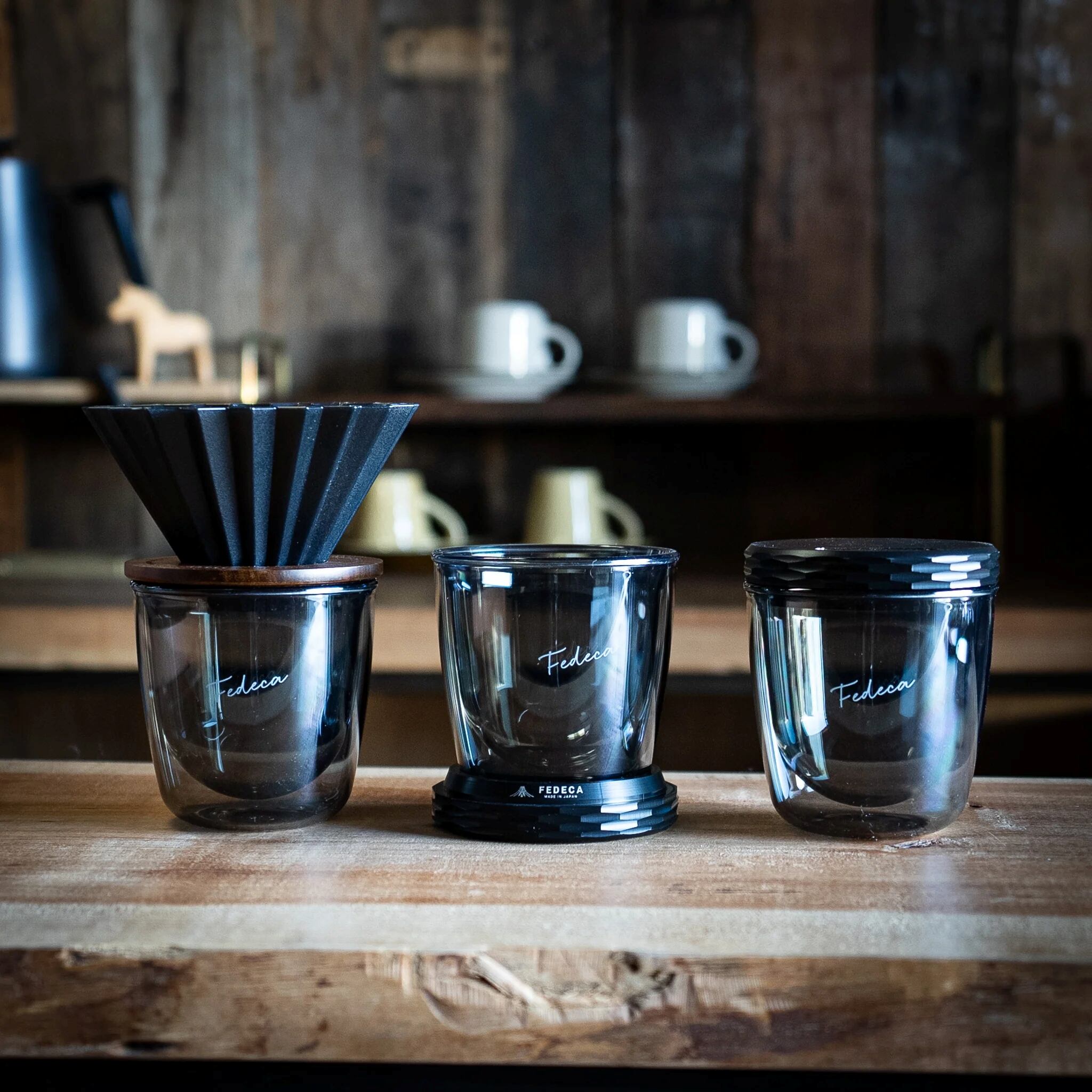 ダブルウォールグラスの美しさと使い心地を、さらに引き立てる。