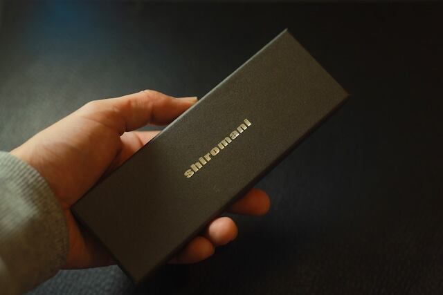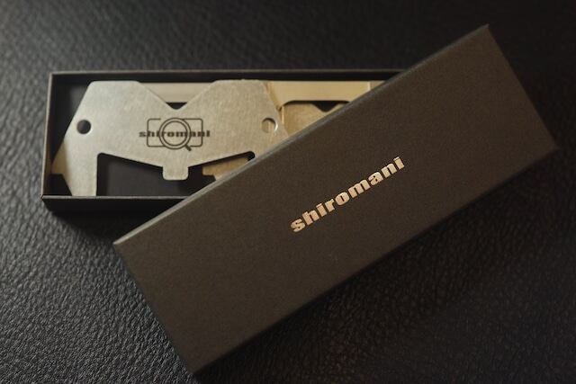 shiromaniロゴのシルバー色の箔押しを施し、