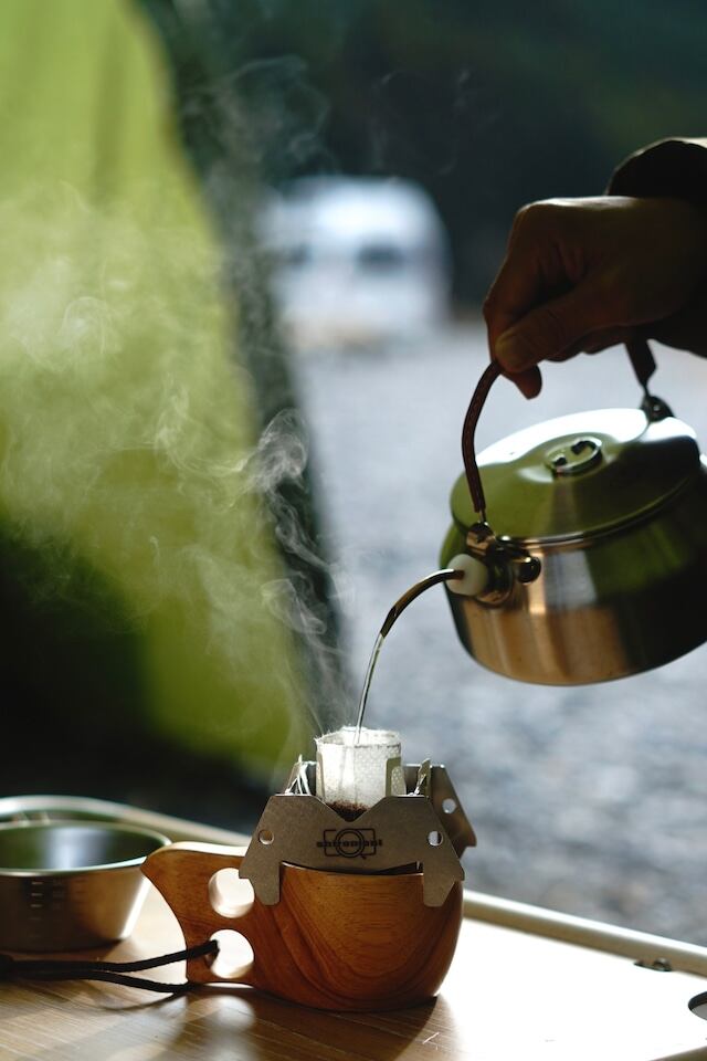 アウトドアシーンに向けたドリップバッグスタンドです。