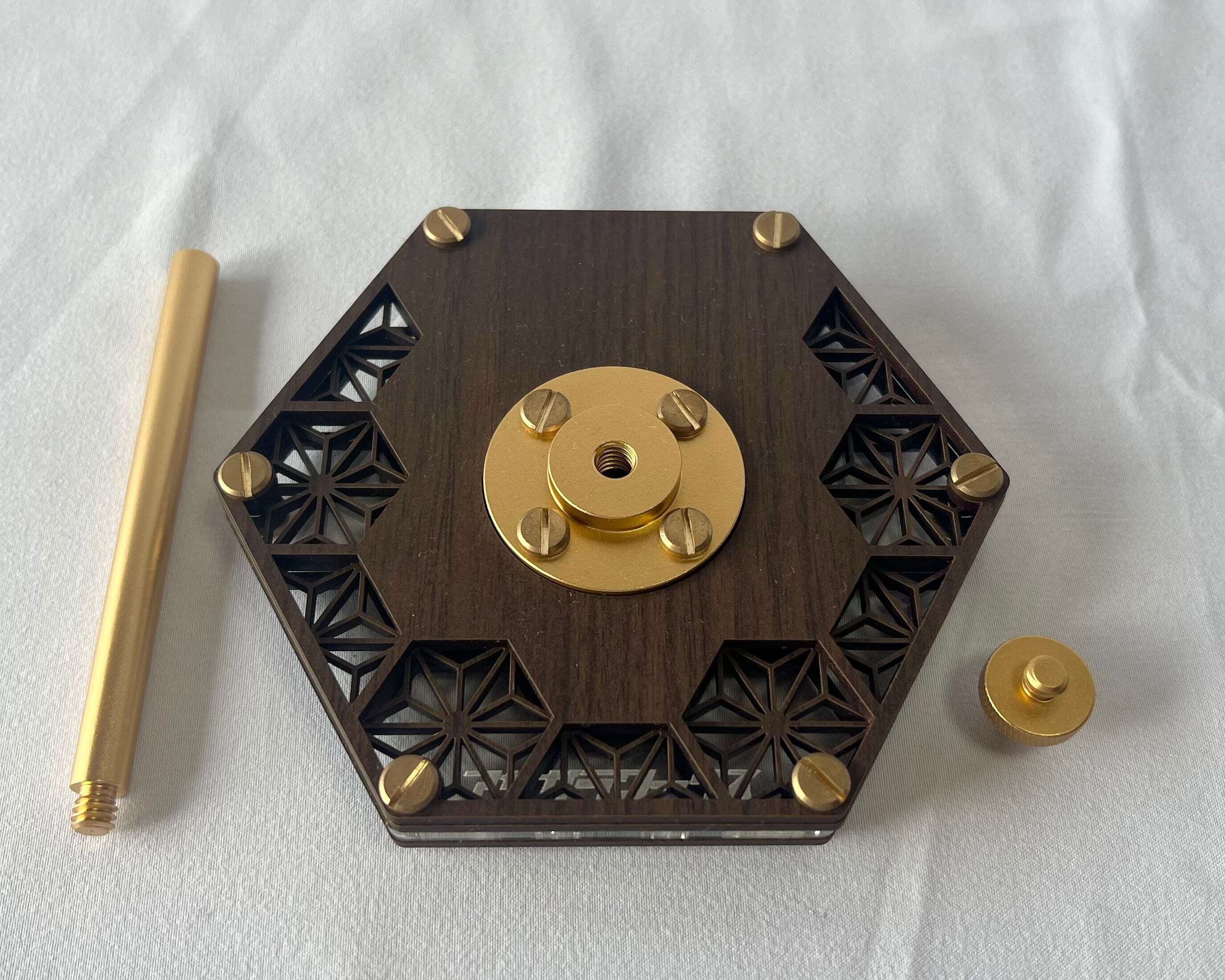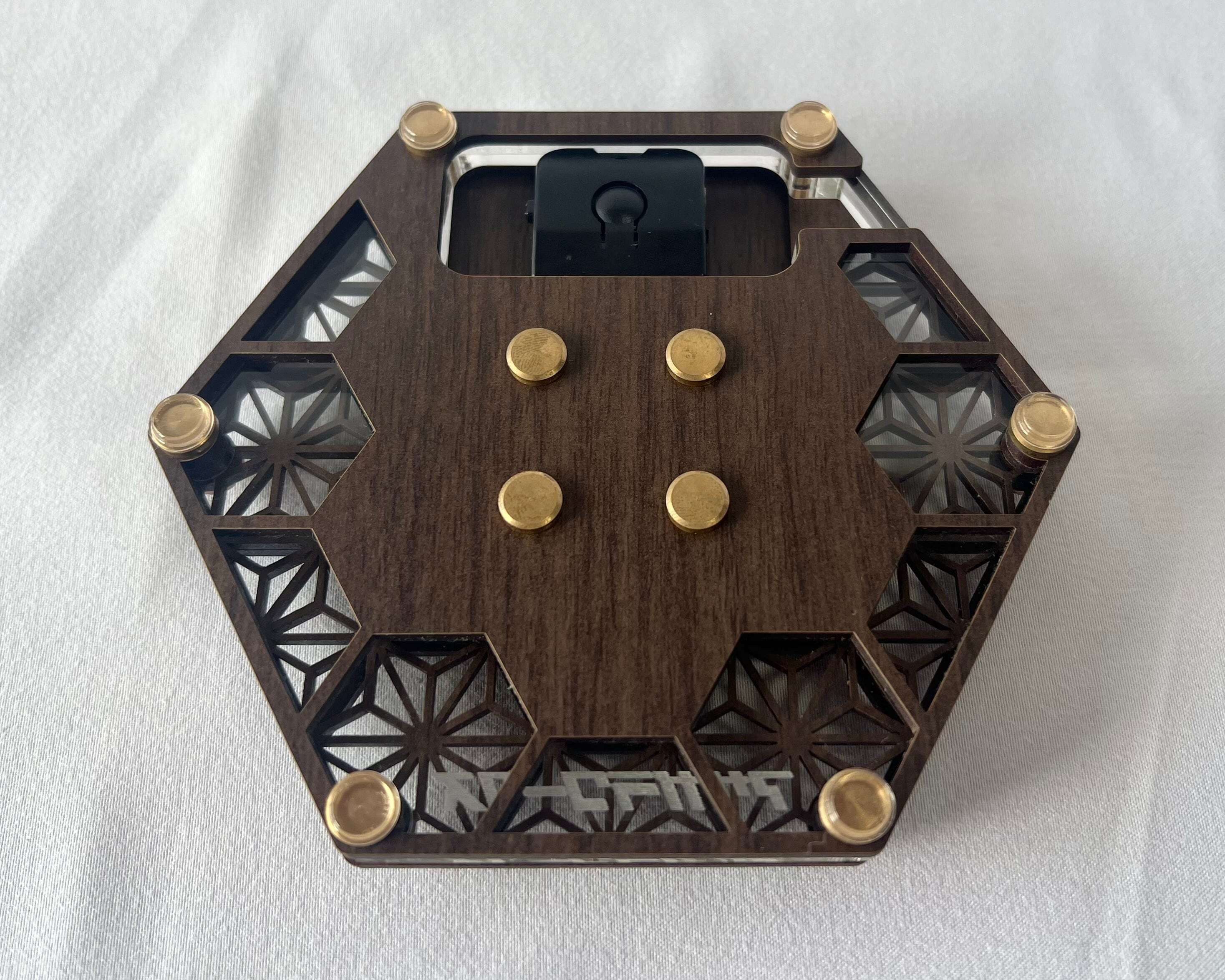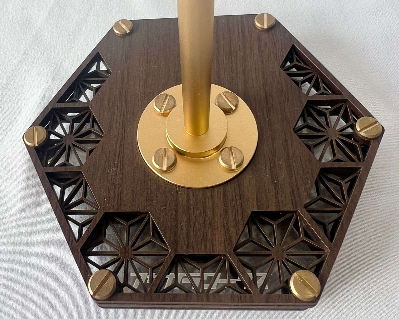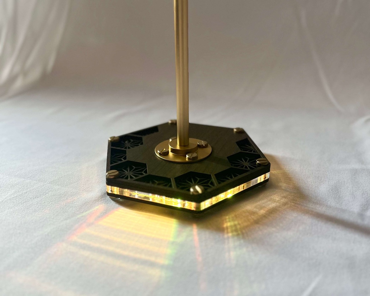 ・レーザー加工機でカットした模様は組子細工の麻の葉のパターンで平安時代に仏教の尊像の衣服にも用いられており、