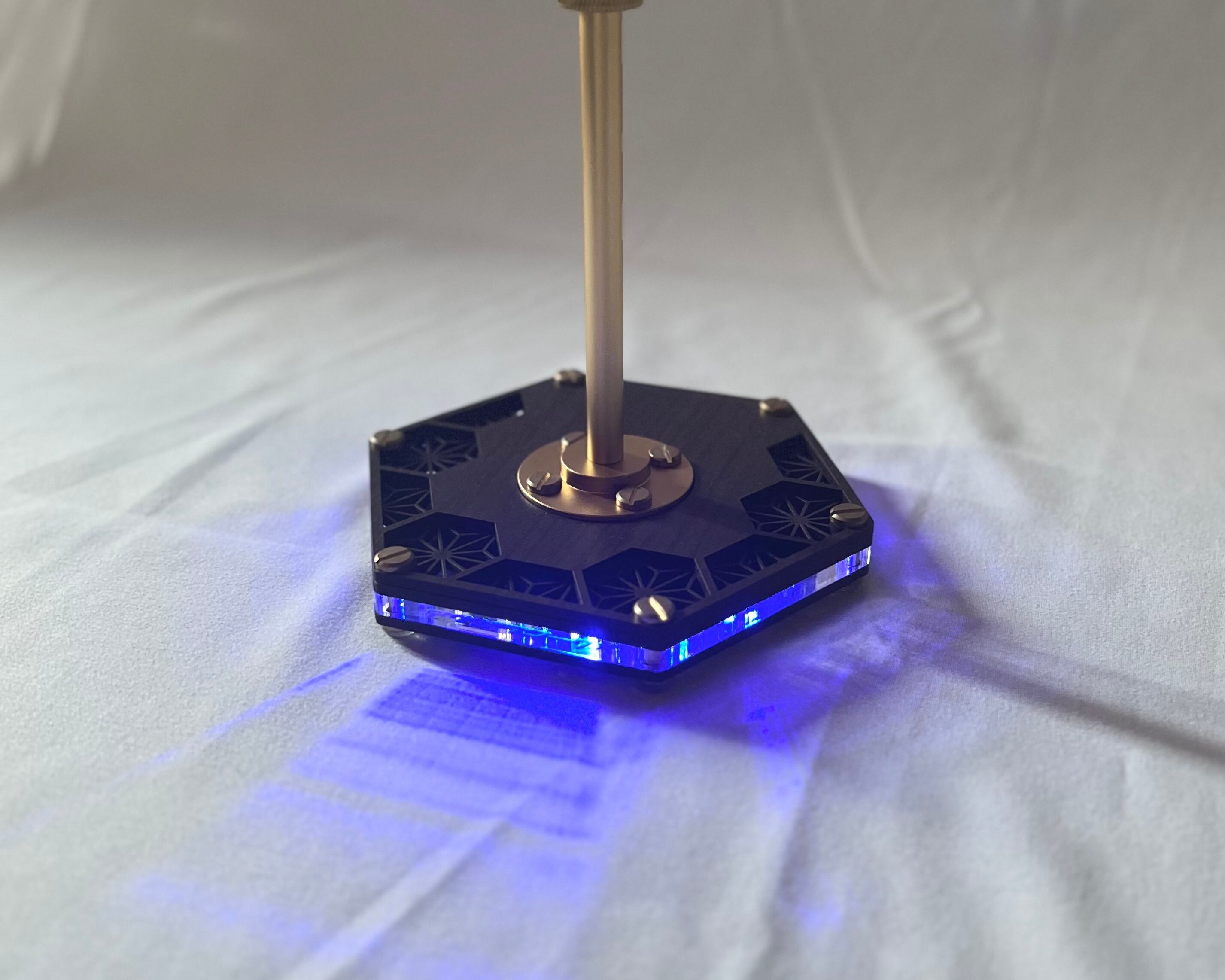 ・レーザー加工機でカットした模様は組子細工の麻の葉のパターンで平安時代に仏教の尊像の衣服にも用いられており、